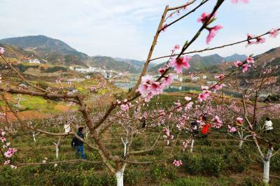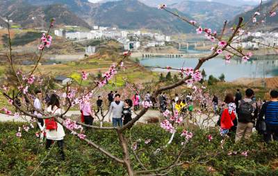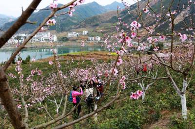 3月12日,游客在竹山县官渡镇街道居委会河西桃花基地赏花拍照。3月8日至3月25日,该镇以万亩桃花、秦巴古盐道、踏春之旅为基础,举办桃花采风、摄影作品展、赏花赋诗巡游会等首届桃花节系列活动,全方位、多角度品鉴、记录、展现人间桃花源的自然风光和文化底蕴,宣传“秦巴风情镇•人间桃花源”旅游品牌,助力旅游发展、精准脱贫。