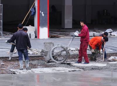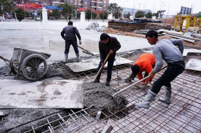 3月13日,建筑工人正在十堰市郧阳区汉江南岸的长岭经济开发区最后浇筑消防站水泥地坪。长岭经济开发区消防站占地面积4800平方米,建筑面积4164.24平方米,该消防站的建成将为长岭经济开发区和十堰滨江新区20多平方公里范围提供消防保障。 视界网周家山 摄