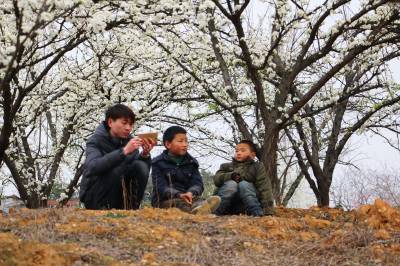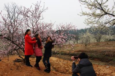 2016年3月13日,大悟县新城镇新城村李花盛开。当日,新城村李花盛开,满树银花,一片洁白。同时,桃花开了,不知名的山花也开了。小孩子们在李树、桃树花下观花,调皮的小男孩爬到树上玩耍;姑娘们在花下赏花拍照;村民在树下劳动;游人慕名前来观花、赏花、拍花。大悟,这里是一片红色土地。红土地上,雪白的李花,粉红的桃花,多彩的山间野花,让人目不暇接。红土地、鲜花、小孩、村民、游人、耕牛、小狗、飞鸟、池塘,构成一幅幅美景,不是仙境,胜似仙境,让人流连忘返。