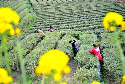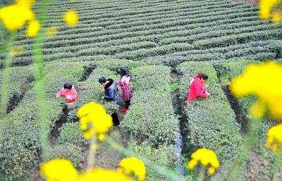 产业扶贫显活力 3月13日,宣恩县椒园镇庆阳坝村农民正高兴地采摘今年第一茬春茶。 近年来,宣恩县坚持以持续增加农民收入为核心,围绕“北茶南果高山药”的产业布局,统筹安排脱贫产业项目,扶持发展茶叶、水果等六大扶贫主导产业60多万亩,从而不断提升贫困群体造血功能,力争实现以产业扶贫带动农户脱贫致富。视界网 李以国 摄 13997771030