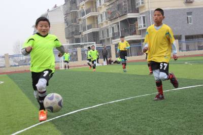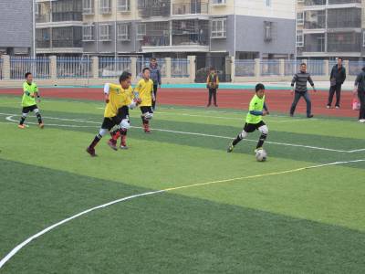 2016年3月13日,湖北省襄阳市襄州区双沟镇首届小学生足球比赛开赛,同学们在绿茵场上团结拼搏、展现自我,感受足球运动魅力,享受足球运动乐趣。 据了解,2016年2月,襄州区双沟镇各中小学体育教师在接受国际足联足球运动推广讲师团成员西班牙足球教练费尔南多的专业培训后,足球进校园活动在校园内全面开展,足球课纳入每周体育课权重,大课间增添了足球操,班级组建了自己的足球队,课外成为班级对抗赛的的主阵地,学生在浓郁的足球文化氛围中体验足球乐趣,掌握足球运动技能,让足球运动融入学生的学习、生活。(周学明 摄)