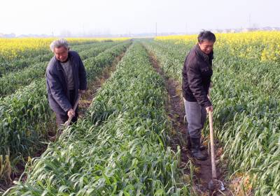 3月14日,黄梅县孔垄镇吴河村农民在小麦田间清沟防渍。眼下,正是小麦、油菜等农作物春季管理的关键时刻,该县农业局组织100多名农业专家、农技人员,深入田间地头,抢抓时机指导农民开展春管,确保全县60万亩小麦、油菜增产丰收。(视界网 吴志雄 摄)