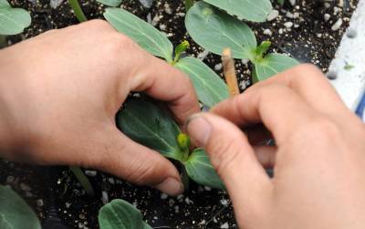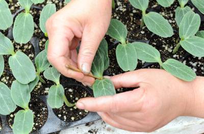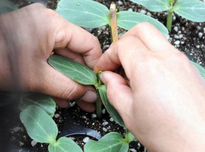 3月14日,在宜城市流水镇落花潭湖北京瑞通达生态农业科技有限公司双遮阳、全温控、保暖降温的阳光板智能温室内,技术人员在育嫁接西瓜苗,据介绍,目前,他们已经培育西瓜苗200万株,可以种植西瓜1万亩早熟西瓜。
