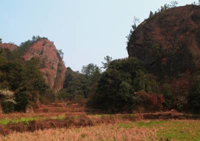 金家湾拥有丹霞山体40余座,为湖北省最大、最典型的丹霞峰丛景观。特别是山体岩壁均为红色,具有极高的游览观赏价值和科学考察价值。景区内群峰争艳,高低错落,形态各异。山峰有的陡峭突兀,有的圆润平滑,连绵起伏,重峦叠嶂,为观光、攀岩和历险活动提供了优越条件。其中的红岩、谷地直曲不一,宽窄相间,纵横交错,将各种类型的丹霞山体、岩壁和众多景点连成一个景象各异,功能不同,而又紧密相连的整体。