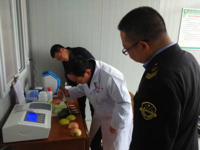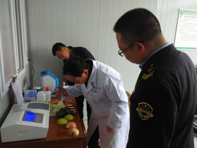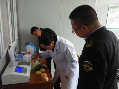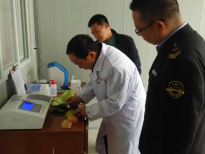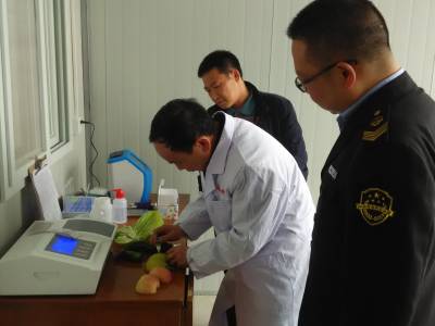 通城:检查食品市场保安全 15日,通城县食品药品监督管理局稽查人员刘涛和县产品质量检验检测中心技术人员葛云在湖北宏锦绿色果蔬物流有限公司现场抽样检测水果、蔬菜。 连日来,该县食品药品监督管理局会同县产品质量检验检测中心组织稽查、质检人员深入全县基地、企业、超市对生产(种植)加工和经营的食品、农产品的质量安全情况进行监督检查,确保城乡居民买到放心的食品、农产品。(通讯员徐俊、胡娟/摄)