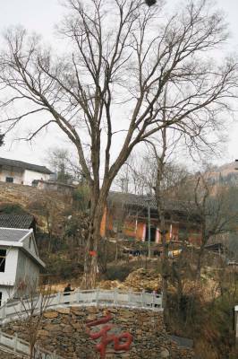 本报讯 3月17日,竹溪县龙坝镇同心村六组村叶家院中的古榔树正萌动新绿。该村文书唐海龙说,“镇上和村里花了很大待价砌岸挡土,才保住这棵树。”此古榔树,据当地林业调查审定树龄在600年以上,胸胫两人合抱,树高约70余米。这株古榔树生长在叶家凸山脚下,与村主路紧邻,因多年雨水冲涮,树根暴露或被毁,为保护这棵古树,2015年11月龙坝镇政府、村委会共想办法,耗资6万余元浆砌了8米多高的挡土岸,安装大理石护栏,镶嵌大型红色“和”字,体现乡村绿色文化气息。“不仅要保护好古树,而且要使其成为村中一景。”龙坝镇党委书记柯林说。( 郭军 、郭承国摄)