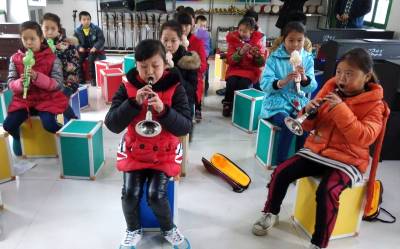 深山小学生在练习吹民乐 如今,谷城县南河镇温坪中心小学一至五年级的小学生也在学习绘画、民乐、舞蹈和开展阅读了。过去,这所位于深山里的小学从未开设过这些课程,这是学校真正把德、智、体教育落到实处出现的新变化。图为小学生在练习吹唢呐、胡芦丝、笛子等。 谷城县城粉阳路33号(宣传部)帅瑜 摄 (手机13972211958邮编441700)
