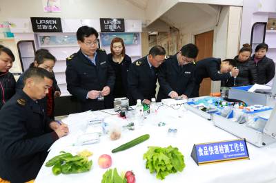 3月18日是湖北省首个“食品安全免费快检服务日”,竹山县宝丰食品药品监督管理所执法人员正在辖区一家超市为消费者提供食品安全免费快检服务,并现场接受食品安全相关问题咨询。据悉,今后每月第一个星期五上午(遇到节假日顺延至第二个星期五上午) 食药监部门将固定开展“食品安全免费快检服务日”活动,免费快检的地点将安排在零售市场、主要街道、社区服务站等场所。食品药品监管人员将消费者可将在市场上买的蔬菜、水果、肉、食用油等食品,送至快检点免费检测,常态化开展“你点我检”活动,确保消费者舌尖安全。