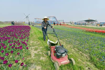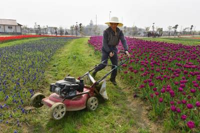 18日,孝感市孝南区朋兴乡长风村的肖师傅在当地金卉庄园除草。该庄园占地1600亩,总投资2.5亿元,突出“回归乡村野趣、相约四季花海、感受农耕文化、体验田园生活”的理念,以“企业+集体+农户”的合作模式,常年有500多位当地留守农民进园打工,月均收入2000多元,同时,带动了周边的餐饮娱乐、旅游住宿、交通运输、土特产销售等农家乐产业的发展,促进了乡村旅游扶贫。 (视界网 王云清 摄)