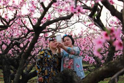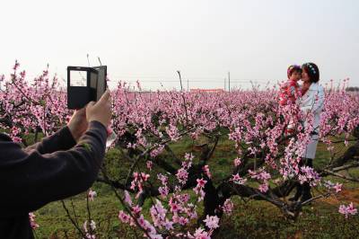 2016年03月18日,孝南区杨店镇万亩桃花争艳盛开,美不胜收,令人陶醉。 当日,2016年中国·孝感(卓尔小镇)桃花文化旅游节在孝南区杨店镇启幕。桃花古驿万亩桃花竞相怒放,天仙红、楚天红、七仙红等20余种桃树汇成粉色花海。粉红色桃花与盛开的金黄色油菜花、雪白的李花、梨花交相辉映,美轮美奂。吸引八方游客观花、赏花、拍花。荆楚桃花古驿,成为花的海洋,花的世界。