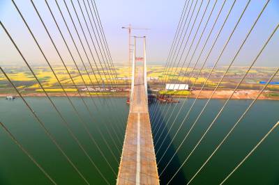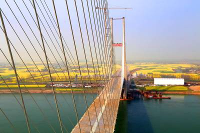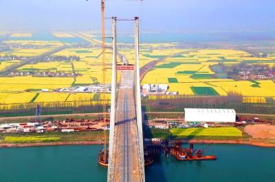 本报荆州讯(通讯员 孟庆虎) 3月19日,蒙华铁路公安长江大桥工地阳光灿烂,大桥和农田相映出美丽景色。 据悉,中铁大桥局蒙华铁路公安长江大桥项目部高度重视水土环保和文明施工,把大桥施工当作自己家园来建设,精心施工,科学管理,不损坏农村一寸土地,不污染农民一分农田,切实做到大桥施工与农民种地两不误,较好地营造了路地和谐氛围,施工单位还获得“全国第四批绿色施工示范工程”的荣誉称号。