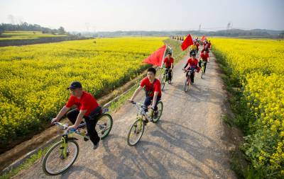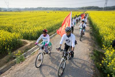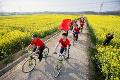 3月19日,咸宁市咸安区工人俱乐部骑行队来到当地建国畈油菜花基地,在花海中骑行赏花游玩。咸宁市咸安区为发掘当地乡土旅游资源,以百公里油菜花带、万亩野樱花等为主打的乡村旅游主线,陆续推出独具当地特色的乡村生态游活动,不断丰富和提升当地乡村生态游品质,吸引了数万名游客前来赏花游玩,成为农民群众增收脱贫的又一增长点。