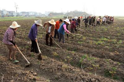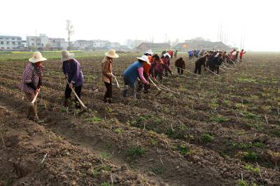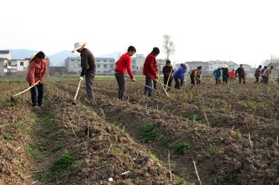 3月19日,房县军店镇何家村48名留守妇女在房陵禾益牡丹花卉产业园为牡丹花苗锄草。房县县、乡(镇)政府“穿针引线” ,推介留守妇女在家门口所在的中药材、耳菇、茶园等产业公司、专业合作社或家庭农场就业。目前,全县有5100多名留守妇女在家门口上班,此举,既增加了留守妇女可观的经济收入,又照顾了家庭与孩子,还将自家往日的荒地利用起来种上庄稼,实现经济、社会效益双丰收。