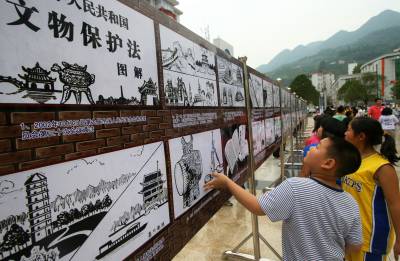 6月12日,鹤峰县实验小学学生正在认真观看文化遗产宣传栏(领取文化遗产和文物保护法相关宣传资料)。当天是世界文化遗产日(6月的第二个星期六),该县通过发放宣传资料、办宣传专栏等形式,开展文化遗产日宣传活动,营造保护文化遗产的氛围,提高了公众对文化遗产保护重要性的认识,据悉活动还将在该县各乡镇巡回开展。通讯员彭涛向红艳摄影报道