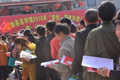 家门口赶集“双创+精准扶贫”招聘会 3月19日,恩施州首场 “双创+精准扶贫”首场招聘会在建始县高坪集镇举行,前来求职者络绎不绝。当日,全县32家企业进场,提供就业岗位1800个,进场人数2000余人,其中精准扶贫人员665人,达成精准扶贫对象意向用工高达231人。本报视界网刘波、朱炜华摄 建始县新闻中心刘波联系电话13032794298