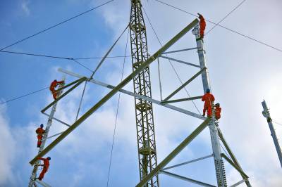 酒湖特高压湖北段加紧铁塔组立