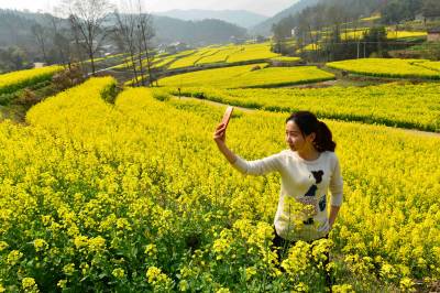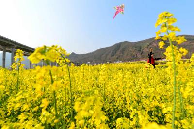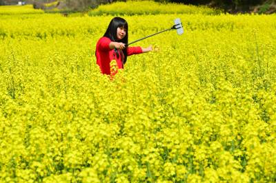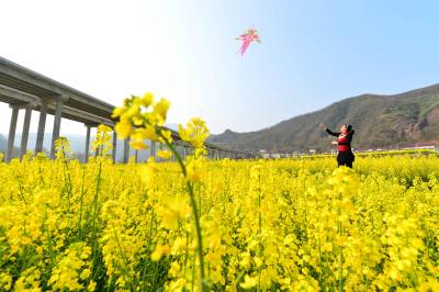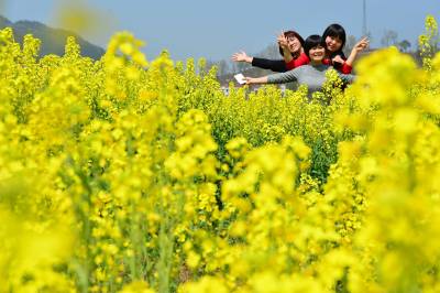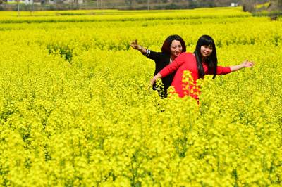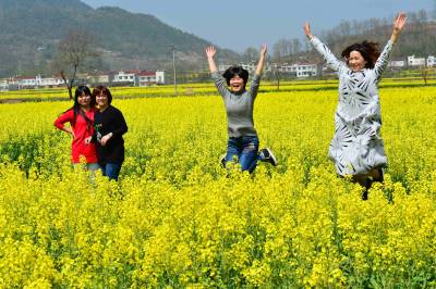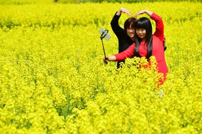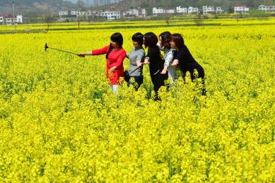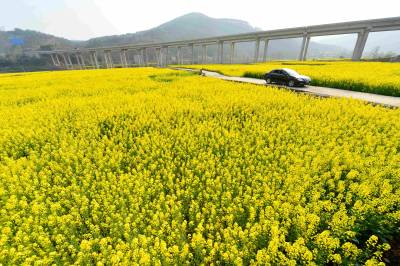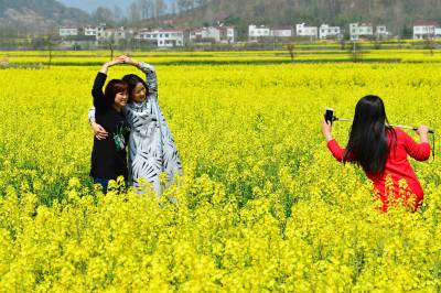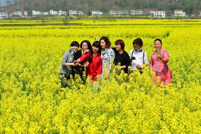近日,保康县10万亩油菜花竞相开放,绵延不尽的油菜花海一片金黄,美不胜收,吸引不少外地游客踏青赏花。 (视界网 杨韬 摄)