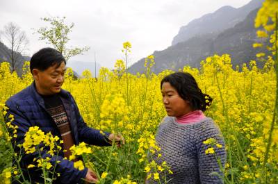 农技人员下田“传艺” 3月21日,在恩施市红土乡老村村中坝组,农技人员正在为贫困户传授油菜中后期管理技术。 当前,油菜正值始花期,是油菜菌核病防治的关键时期。连日来,该乡组织农技人员深入油菜主产区老村、天落水、乌鸦坝等村贫困户家中手把手指导油菜中后期管理技术。技术人员指导农户抢抓晴好天气,重点搞好田间清沟排水和油菜菌核病的防治,并结合病虫防治喷施硼肥和其它叶面肥,以夺取今年油菜的全面丰收。(视界网彭绍峰阮正斌摄)