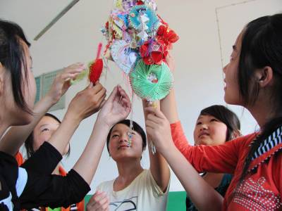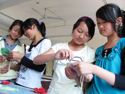 2010年6月12日,湖北郧县刘洞中学学生正用五彩线和彩色布制作各式香囊,以迎接端午节的到来。端午节,当地最讲究的是戴香囊、送香囊。香囊也可挂床头、驱祟避疫、祈福迎祥。此次活动的开展旨在增强学生民族意识,传承民族传统文化,培养动手操作能力。