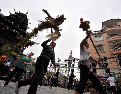 自6月10日开始,宣恩县组织各民间艺术团体开展非物质文化遗产展演活动,一批在土家族、苗族、侗族等民族广泛流传的民间文化绝技重新被搬上舞台与广大群众见面。(视界网签约摄影师:宋文摄)