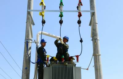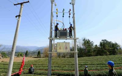 3月28日,国网保康县供电公司员工在店垭镇神农茶场安装茶叶生产加工专用的250千伏安变压器,满足企业生产需要。