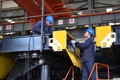 3月28日,孝感高新区航天重型工程装备有限公司员工在车间对363吨两轴重型矿用自卸车进行调试。据悉,该项目自2013年5月破土动工以来,重点开发重型矿用车、高端智能工程装备等产业化项目。2013年,220吨多轴重型电动轮矿用自卸车正式交付试用,打破了我国大吨位重型自卸车长期依赖国外进口的历史;2014年,研发生产了当前全球最大吨位的363吨两轴重型矿用自卸车;2015年,研发生产具有革命性防爆电动无轨胶轮运输车等产品为我国矿企创造出更大、更好的经济效益和社会效益。