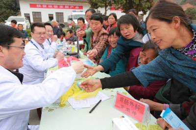 3月30日,湖北省卫生计生委、十堰市人民医院精准扶贫送医下乡义诊活动在竹山县宝丰镇桂坪村开展。来自十堰市人民医院妇产科、胃肠外科、心血管内科、康复科等多个专业的精干知名专家热情地接待群众,耐心细致地解答患者的疑难问题,为数百名群众进行了义诊。据悉,省卫生计生委精准扶贫工作队驻桂坪村以来,多次组织医务人员为群众“送医送药送健康”,受到当地群众的广泛赞誉。