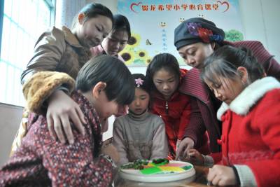 课堂上,有学生不懂得问题时,她总会俯下身来耐心讲解,临走时还不忘抚摸孩子的头。中午,“留守儿童之家”开放时间,她又和孩子交心谈心、下棋游戏。
