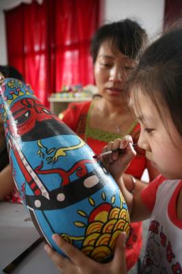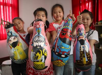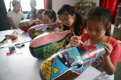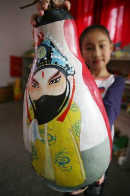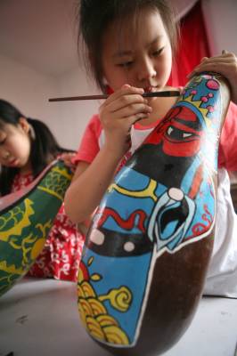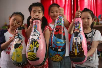 6月12日,在誉为我国”三国文化之乡”的湖北襄樊,该市松鹤路小学和襄樊阳光未来美术学校联合开展”特色传统文化进校园”活动,组织学生在葫芦上描绘”三国”故事中的戏剧人物形象,让小孩们了解三国历史,学习三国文化,感受中国传统文化的无穷魅力。