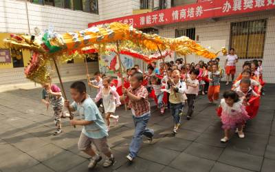 赛龙舟讲民俗2010年6月13日,湖北省襄樊市鹏智希望之星幼儿园学前班的小朋友正在进行赛”龙舟”比赛。当日,该园开展了”赛龙舟讲民俗”活动,老师们通过赛龙舟、包粽子等系列活动来给孩子们讲解端午节的来历,让孩子们充分感受民俗。通讯员范宝山特约记者刘涛摄
