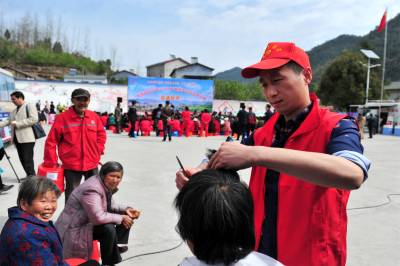 湖北十堰:书香满园春意浓 樱满枝头花正好 校园为民众开放赏花