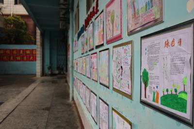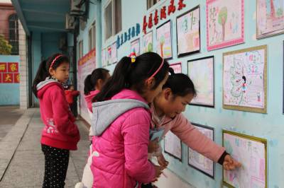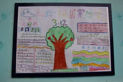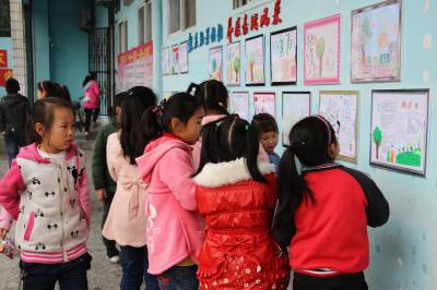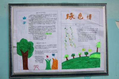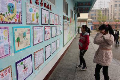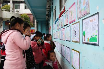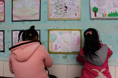 2016年03月31日,云梦县城关第三小学的孩子们在课间观看“植树造林 绿化家园”图刊。这些图刊都是该校学生在植树节到来之前经过思考亲手绘制的。孩子们用心灵通过图刊表达自己的心愿、决心和向社会的呼吁:给地球披上绿色外套;植树造林,绿化家园;我给祖国穿绿衣;保护地球环境,从我做起;保护家园——地球,等等。本报视界网 陈保忠 摄