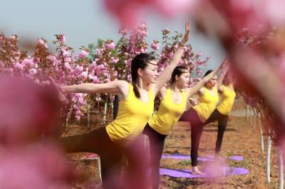 湖北十堰:书香满园春意浓 樱满枝头花正好 校园为民众开放赏花