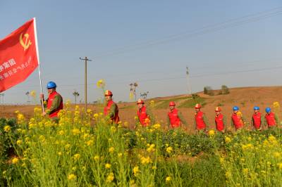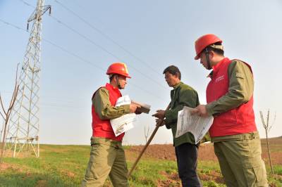 3月31日下午,国网老河口市供电公司共产党员服务队来到李楼镇鲍河村,对过境的220千伏电力线路进行巡视,并向田间地头的农民朋友宣传电力设施保护常识,防范清明节期间山火外破,提升群众护线意识,营造良好的电力设施保护氛围。
