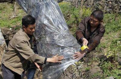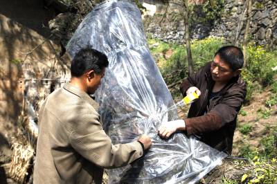 3月31日,竹山县林业科技特派员肖艳华到该县潘口乡潘口河村3组村民吴官仁家,采用树干基部绑膜和束草等措施阻止核桃果实象甲上树危害,确保核桃树丰产。