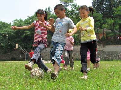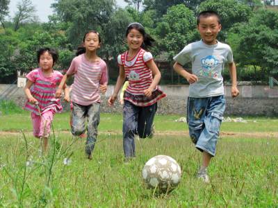 2010年6月13日,湖北郧县刘洞镇中心小学的学生正在进行着一场激烈的足球赛。随着世界杯的热播,该校也掀起了足球热,并开展了”踢足球、强体魄”体育活动,以此表达对世界杯的关注,对足球的热爱。