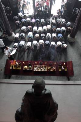 13日下午,秭归屈氏后裔的代表一行62人带着果品、香等祭祀用品,自秭归归州镇的万古寺村一路乘车涉江到达茅坪凤凰山新屈原祠祭拜祖先屈原。据万古寺村支书屈家明介绍,此次参加祭拜的人,年龄最大的69岁,最小的仅9个月。他们清晨5时出发,渡过香溪河、长江,历经3个小时才到达新屈原祠。秭归万古寺村是全国屈姓人口最多的村,史料记载秭归乐平里为屈原出生地,而民间传说则认为,乐平里其实为屈原祖先封地,而万古寺村的屈家湾才是屈原出生地,这就是为何万古寺村拥有众多屈姓人口,而乐平里反而无屈氏后裔的原因。全村现有屈氏后裔1350余人,约占全村总人口的62%,而目前分布于全国10余个省市的屈氏后裔大多祖籍万古寺村。该村屈姓人口始终奉屈原为始祖,历经2000余年,经历了数不清的战乱和明清两次大移民而未远离故土。清光绪年间,当地村民修建了”屈氏宗祠”,每年端午节举行祭祀活动,一直延续至今。
