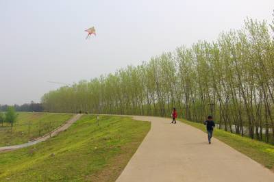 2016年4月2日,云梦城西清明河府河大堤放飞风筝的孩子和走在春天的人们。“这时候草儿青青,草儿青青,花儿花儿开得艳;春天的太阳多温暖,太阳多温暖。 啊啊啊伙伴,啊啊啊伙伴,亲爱的伙伴,走啊,走啊,走向大自然…… ” “我们驰骋在原野,追逐鲜花和流云。啊,我们拥抱美丽的大自然,走进它的门。”久违的歌声,把人们带回童年,带到大自然。 当日周六,清明小长假的第一天,阳春三月,众多的爸爸妈妈带着孩子走向田野,走向河边,走向大自然,放飞风筝,让孩子们感受春天,感受大自然,享受生活的乐趣。