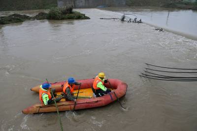 据了解,此次恶劣天气共造成咸宁4条35千伏线路、54条10千伏线路跳闸停运,造成1944个台区、80704个用户停电。灾情发生后,咸宁供电公司启动应急预案,共出动抢修人员323人次,抢修车辆85台次。截止3日19时30整,已经恢复供电。图为,供电人员在咸安龙潭区淦河中进行供电设备的抢修。(詹文峰谌胜蓝 )