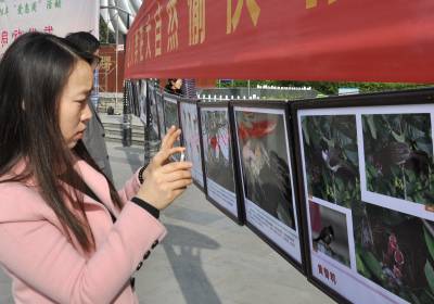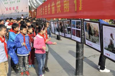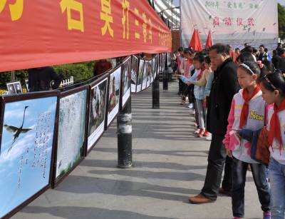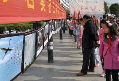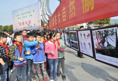 4月1日,巴东县“爱鸟周”活动摄影展在县城巫峡广场正式展出。当日,前来观赏鸟类摄影图片的市民和学生络绎不绝。