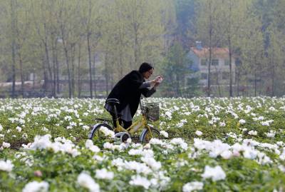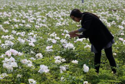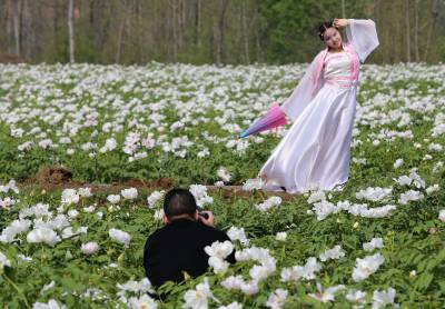4月4日,襄阳市襄城区尹集乡、卧龙镇等地栽种的4000多亩油用牡丹盛开,不少游客慕名而来,踏青赏花。油用牡丹是多年生小灌木,三年进入丰产期,且产量高、出油率高、油质好、适应性广,种植后可以收益40年。目前,襄城区已种植油用牡丹4050亩,育苗1050亩。