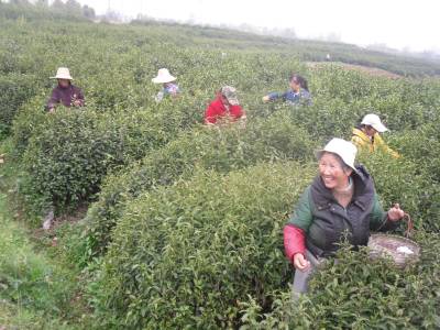 4月5日,采茶女工在孝南区杨店镇浐川茶场福鼎大白茶基地采摘鲜叶。今春,该茶场1200亩茶叶基地就近吸纳周边村留守妇女500多人采茶,在3月20日至4月底的40天春茶采摘季,这些采茶女工可采收春茶6000多斤,产值300多万元,人平日均150元。