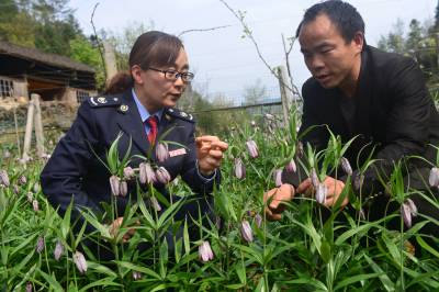 4月1日,建始县地税帮扶工作队员在该县花坪镇三岔村贫困户熊茂密花开满园的贝母地里了解长势情况。近两年来,县地税局结对帮扶三岔村后,走产业发展扶贫治理,成立专业合作社,鼓励贫困户大力发展贝母和牡丹等名贵药材,目前全村110户贫困户户均发展药材达1.2亩,成为脱贫致富的主打产业。本报视界网刘波、周代武摄 建始县新闻中心刘波联系电话13032794298