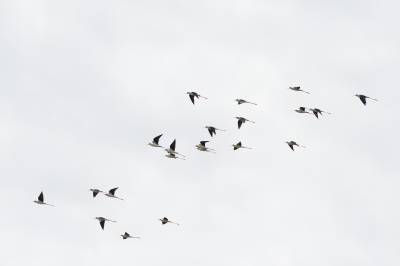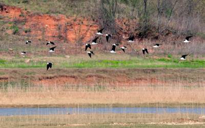 4日,一群红腿鹬鸟(俗称红腿娘子)在郧阳汉江河畔自由翱翔,“做客”汉江。红腿鹬鸟,是众多候鸟中的“美女”,身材修长,亭亭玉立。长而薄的黑色鸟嘴和细长的红色的腿,背部羽毛黑色,腹部羽毛呈现白色,以昆虫、蝌蚪等为食。