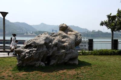 三峡奇石"龙马精神"、"祥兽呈瑞"、"灵璧龟石"三组造型烘托出宜昌三峡特色。