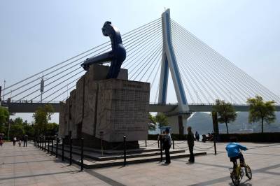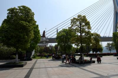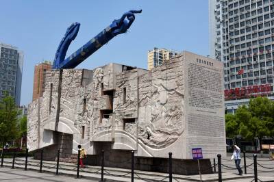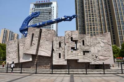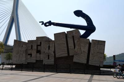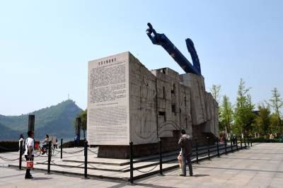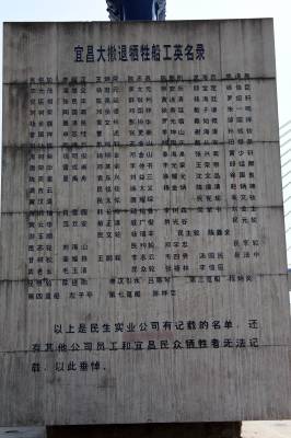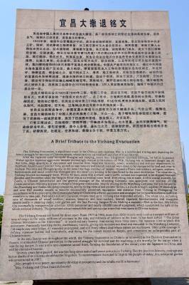 宜昌大撤退纪念园地处宜昌市滨江公园夷陵长江大桥侧,占地约5000平方米,由主体雕塑、绞滩柱、马光石群、木栈道、鹅卵石步道、园名碑等六部分组成,主体雕塑长15米、高9米、厚3米,采用数字和铁锚组成,外形取船和长城之形。钢筋混凝土骨架外贴红色花岗岩浅浮雕,通过定格时间、浮雕表现了当时的历史场面,突出了“宜昌大撤退”发生于1938年10月至11月的时间内涵。70年前的今天,正值民族生死存亡的危险时刻,数万宜昌民众和民生实业公司组织24艘轮船、征用850余只柏木船,雇用3000余名工人,仅用40天时间,将3万多人和10万吨重要军工物资从宜昌抢运入川,成就宜昌大撤退这一重大历史事件。