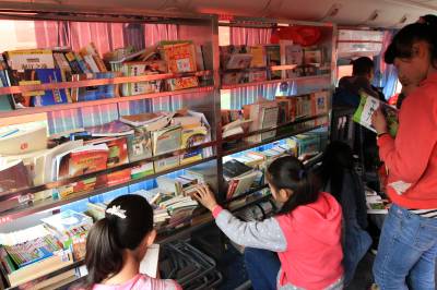 4月9日,“知识改变命运,阅读成就梦想”的房县流动书屋停靠在该县军店社区,当地学生、群众享受免费阅读科普书籍的乐趣。该县县委、县政府将文化、智力和精神支撑置于精准扶贫的重要抓手,投入1100万元,建设农家书屋294个,配备图书50万册,实现了行政村全覆盖,同时编绎科普文化读本2.6万册,发放到学校、农村,以满足不同层次的读者需求,房县开展全民阅读的经验在全省范围内得以推广。