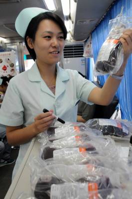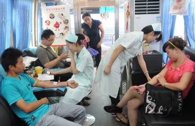 14日,世界献血日。宜昌市一些游玩的市民自发走的上街头献血车无偿献血。据了解,今年元至五月,该市城区共有2万多市民无偿献血,献血达到7000万毫升。(记者杨平摄)