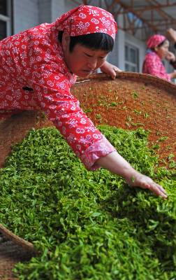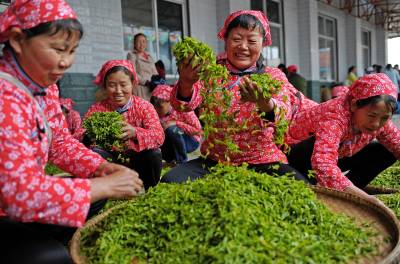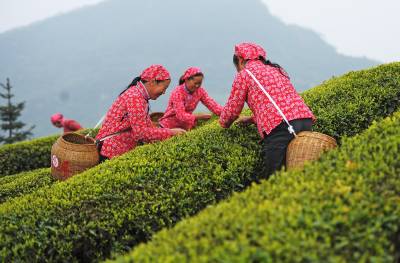 喜采春茶 4月9日,一群专业采茶女在采摘春茶。当天,宜都市松木坪镇云台观3000亩有机茶园喜开园,吸引松滋、宜都、五峰等县市的600多名专业采茶工前来采摘,茶叶产业带动了农村妇女靠采茶致富。 曹礼达摄