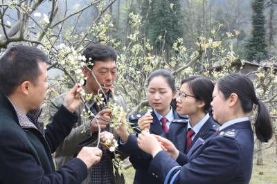 11日,春意盎然,鹤峰县国税局干部到太平镇龙潭村梨园大户田国之梨园里,宣传税收政策,指导梨园管理。 入春来,鹤峰国税局以培植绿色税源为主,组织局机关干部职工下到全县各种植大户和小微企业进行指导和田间管理服务,加速绿色税源的培植。(何吉安 康绍怀拍摄)